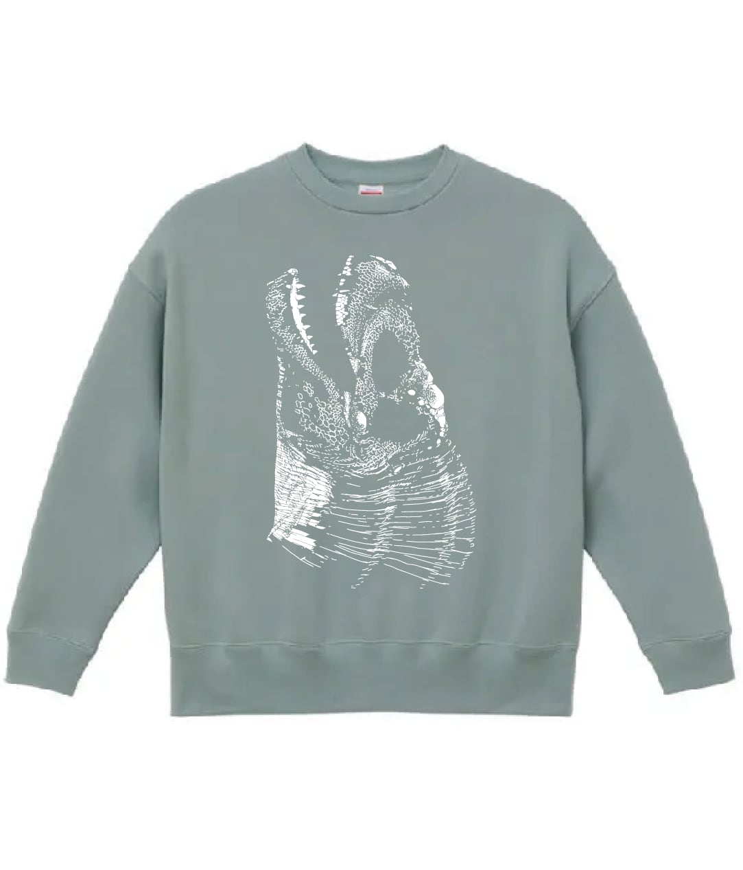 Original illust sweat shirts - T-rex(Body:SmokeyGreen×Illust:White)