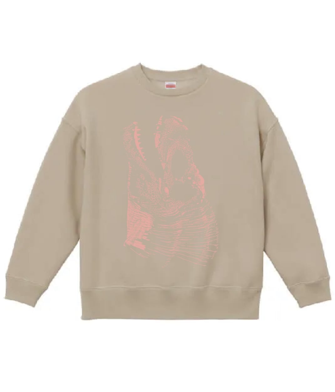 Original illust sweat shirts - T-rex(Body:Beige×Illust:BeigePink)