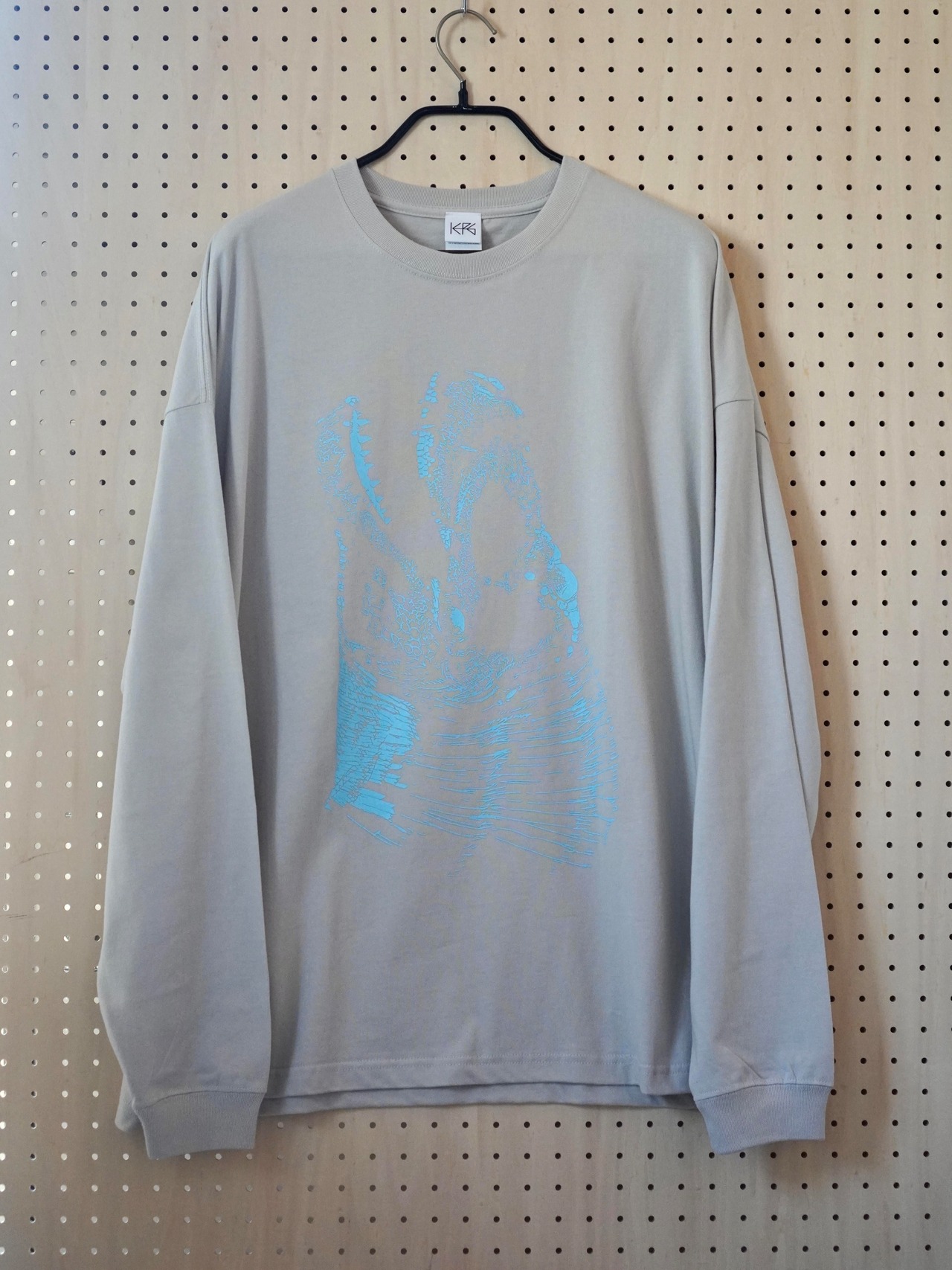 Original illust long sleeve T-shirts : T-rex(Body:Frost Gray×Illust:Powder Blue)